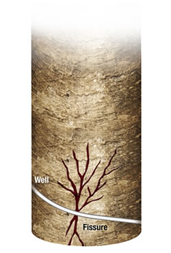 Hydraulic fracturing is the injection of fluids under high pressure to crack or fracture the rock to allow oil and gas to flow into the wellbore. The natural gas or oil can then flow to the surface under controlled conditions through the wellhead and be collected for processing and distribution.