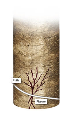 Pendant la fracturation hydraulique, on pompe à forte pression dans la formation cible un mélange d’eau, de sable et d’additifs chimiques destiné à assurer l’intégrité du puits et à stimuler la production par la fracturation. Les fractures ainsi créées restent ouvertes par injection de sable ou d’un autre « agent de soutènement ». Ce sont les voies par lesquelles le gaz naturel s’écoule dans le puits.